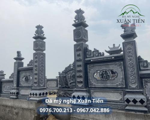 Được làm hoàn toàn bằng chất liệu đá xanh đen Thanh H, và được đơn vị thiết kế và thi công trong khoảng thời gian là 2 tháng, kể từ khi làm việc và trao đổi kí kết hợp đồng với gia đình a Phú. Đơn vị tiến hành thi công lắp dựng thì đến thời điểm hiện tại đơn vị mình đã hoàn thiện và bàn giao khuôn viên lăng mộ cho gia đình anh.
